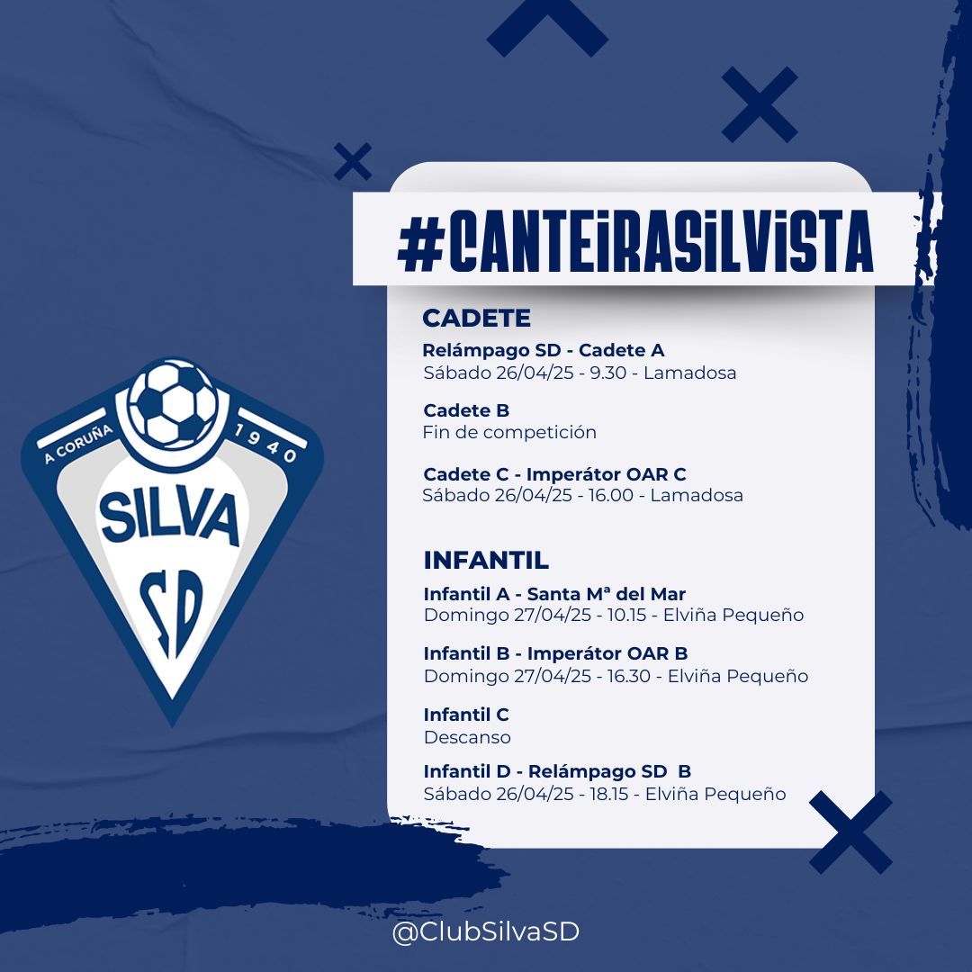 Infantil A: Silva SD – Santa Mª del Mar. Domingo 27, 10.15 (Elviña Pequeño).