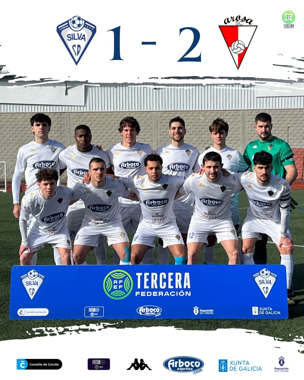 Ante el Arosa (1-2), el equipo logró empatar en el minuto 63 con un gol de Iago, que devolvía la igualdad al marcador tras el tanto inicial del conjunto visitante y premiaba el esfuerzo y la insistencia del Silva. A partir de ahí, los nuestros crecieron en el partido, llevaron la iniciativa durante muchos minutos y rozaron en varias acciones la remontada, mostrando carácter, ambición y fe hasta el final.