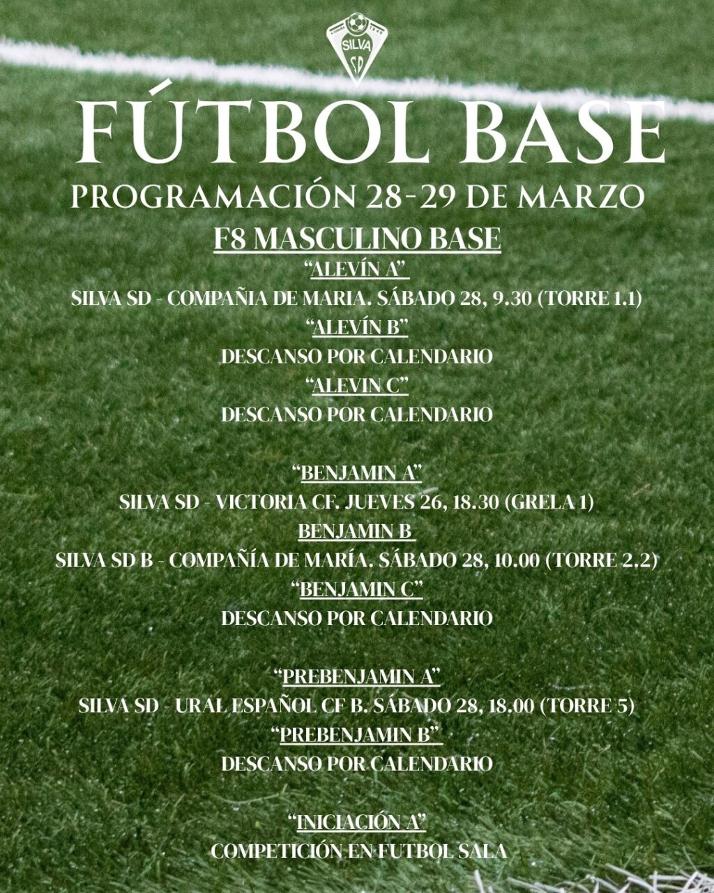 La cantera del Silva S.D. afronta un nuevo fin de semana de competición con varios encuentros en los que nuestros equipos volverán a representar al club con compromiso, ilusión y ganas de seguir creciendo.