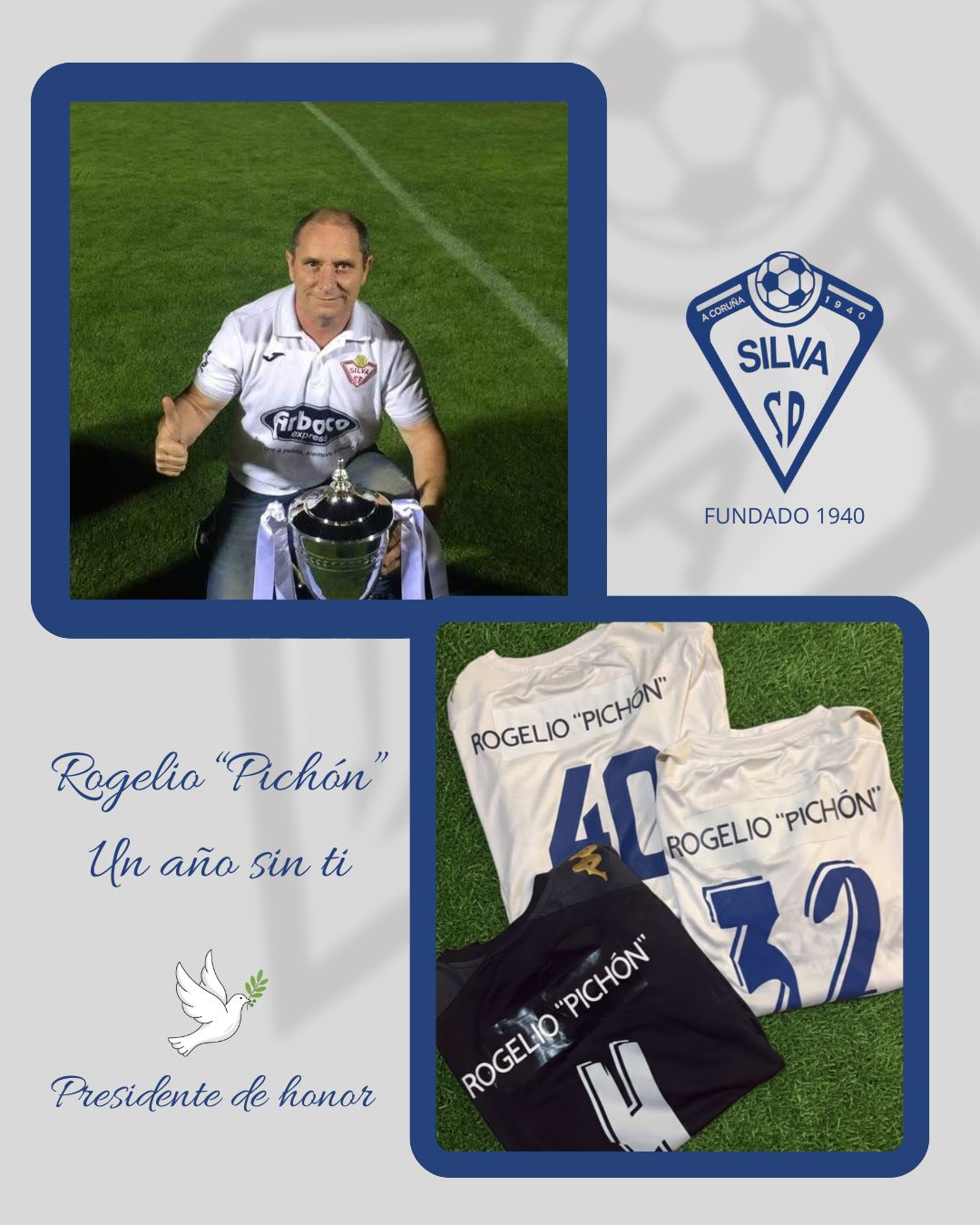 El Silva S.D. guardará mañana, en el partido frente al Arosa, un minuto de silencio en memoria de Rogelio “Pichón”, persona muy importante en la directiva del club, coincidiendo con el aniversario de su fallecimiento.