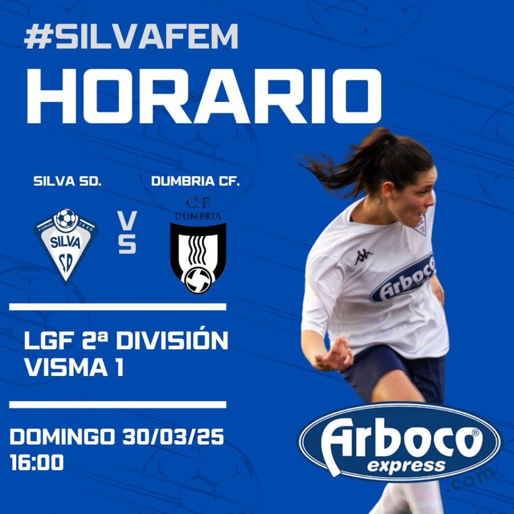 El partido de la 25ª jornada de LGF 2ª División, grupo 1º, entre Silva SD y Dumbria CF se disputará el domingo 30 de marzo del 2025 a partir de las 16.00 en las instalaciones de Visma 1.