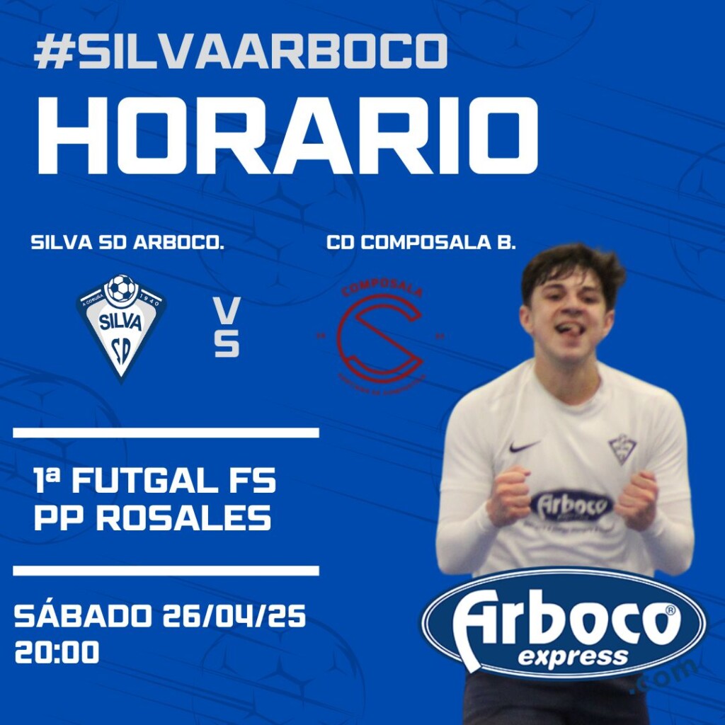 El partido de la 26ª jornada de 1ª Futgal FS, grupo 1º, entre Silva SD ARBOCO y CD Composala B se disputará el sábado 26 de abril del 2025 a partir de las 20.00 en las instalaciones de PP Rosales.