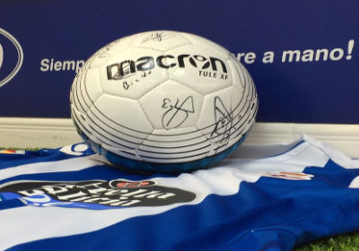 La equipación mantiene el tono blanco tradicional de la entidad desde el año 1940, con ligeros detalles en azul marino en cuello, manga derecha y lateral derecho para dotar de estilismo a la camiseta. Del mismo modo, el escudo de la entidad aumenta su presencia con ligeros detalles en gris en ángulo de 45º en el frontal-lateral derecho. El pantalón, por su parte, conserva el color blanco con una franja azul marino en el lateral derecho. Las medias son blancas, con la zona superior en azul marino.